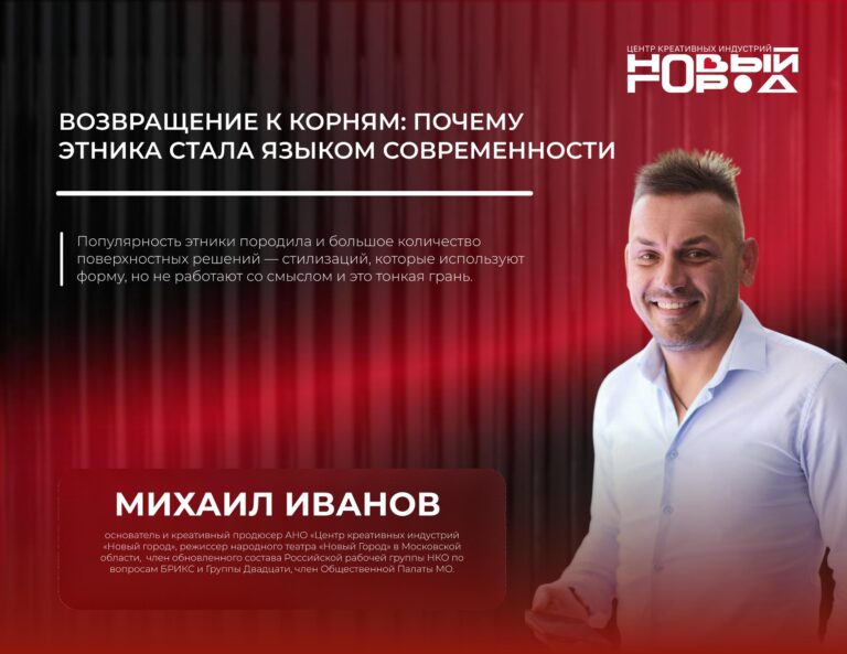 Экспертное мнение креативного продюсера АНО “Центр креативных индустрий “Новый Город” Михаила Иванова Есть ощущение, которое невозможно не заметить, если внимательно смотреть на культурную повестку последних