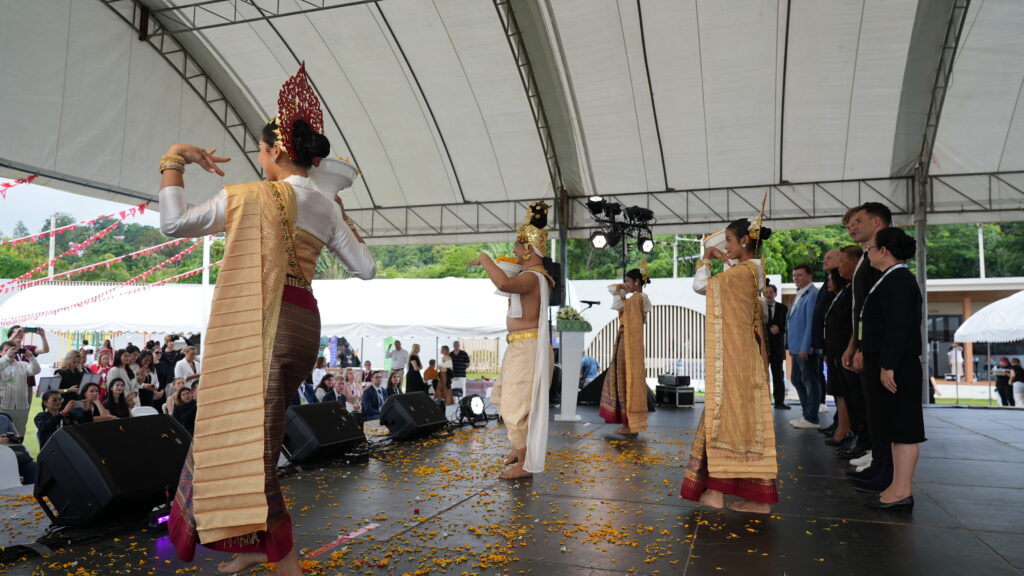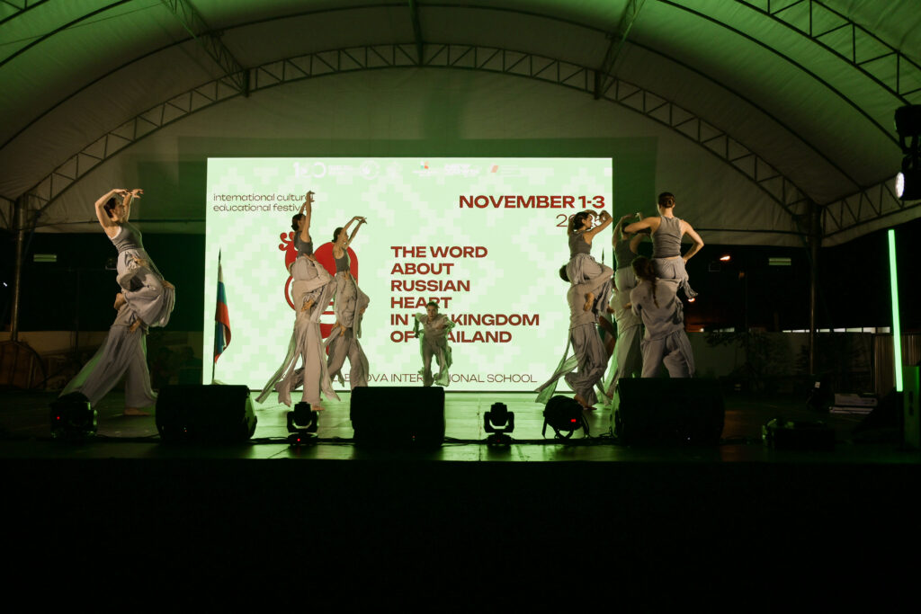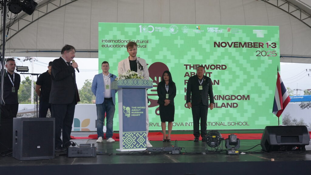 Открытие проекта «Слово о русском сердце» 1 ноября 2025 года на площадке Kinderville Nova International School прошло в тёплой, торжественной и деловой атмосфере: фольклорные приветствия тайских и российских коллективов плавно чередовались с официальными обращениями организаторов и дипломатов, среди которых выступил Чрезвычайный и Полномочный Посол Российской Федерации в Королевстве Таиланд — Евгений Томихин. В знак глубокой скорби и уважения все участники почтили память покойной королевы Сирикит минутой молчания.