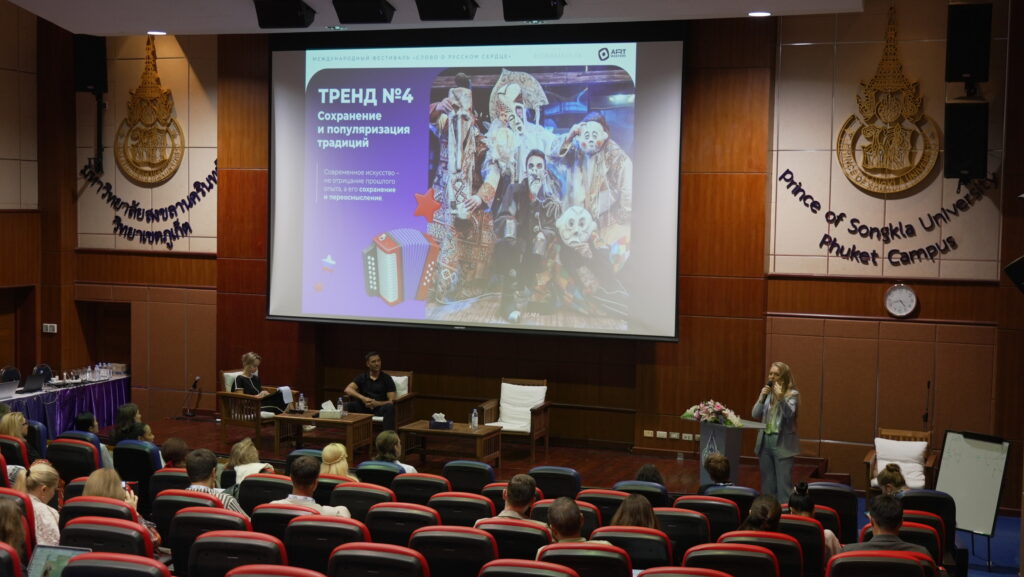 Завершая год, посвящённый 100-летию народной дипломатии, Россотрудничество и АНО «Центр креативных индустрий «Новый город», при поддержке Фонда Президентских грантов, провели с 1 по 3 ноября 2025 года на острове Пхукет международный культурно-просветительский проект «Слово о русском сердце», приуроченный ко Дню народного единства в Российской Федерации. Мероприятие, собравшее представителей 25 регионов России и сотни гостей из Таиланда, стало площадкой живого диалога, где культура, образование и деловые инициативы соединились в одной программе и в одном порыве — познакомить тайскую публику с современной и многогранной Россией. Официальной