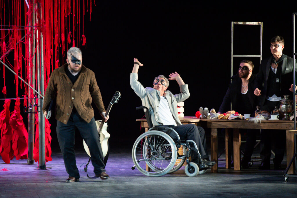 За четверть века мне довелось услышать немало едких комментариев из разряда «вам не стоит этим заниматься». Сначала я обижался и недоумевал: как же так? Я же талантлив, вы просто не понимаете! Потом списывал негативные отзывы на то, что искусство должно быть экспериментальным…. А потом – я научился слушать и учиться. Перед каждым спектаклем я напитываюсь: музыка, поэзия, чужие фильмы, спектакли, случайные образы в транспорте, первые цветы, угрюмый дождь, трещины на асфальте. Всё это копится внутри, переливается по кровеносным сосудам, общаясь с каждой клеточкой организма от мозга к пяткам через сердце и обратно, пока однажды не бабахнет по голове. И тогда начинается самое главное – процесс, который я называю материализацией. Не просто репетиции, а превращение идей в плоть. И даже после этого финал может измениться десятки раз, потому что спектакль – живой организм, где каждая накладная косичка, бутафорский чемодан, складка ткани несут свой образ, свою метафору – всё здесь так или иначе разговаривает со зрителем.